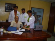 Präventionsprogramm in Bangladesch: Blutdruckmessung bei Verwaltungsangestellten der Grammen Bank, Dhaka